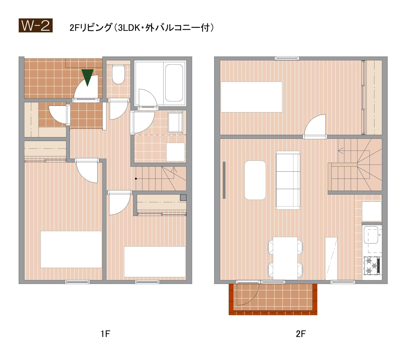 平屋住戸(1LDK)からメゾネット住戸(2LDK・3LDK)まで、幅広いライフスタイルに対応した、多彩なプランをご用意。