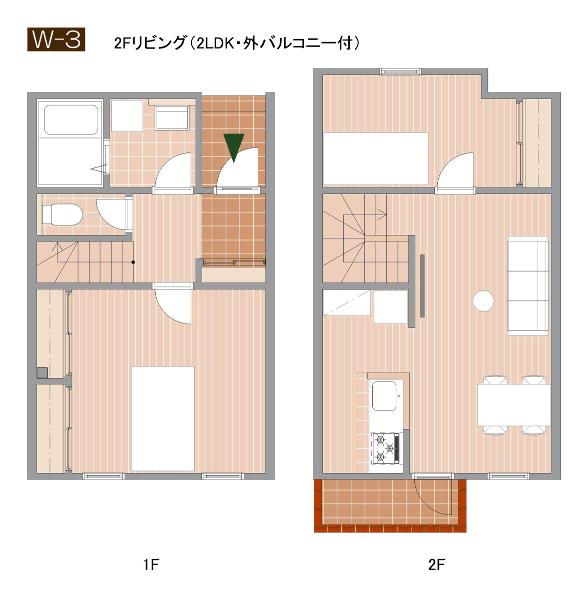 平屋住戸(1LDK)からメゾネット住戸(2LDK・3LDK)まで、幅広いライフスタイルに対応した、多彩なプランをご用意。